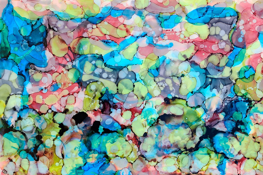 Alcohol ink under resin on ACM
